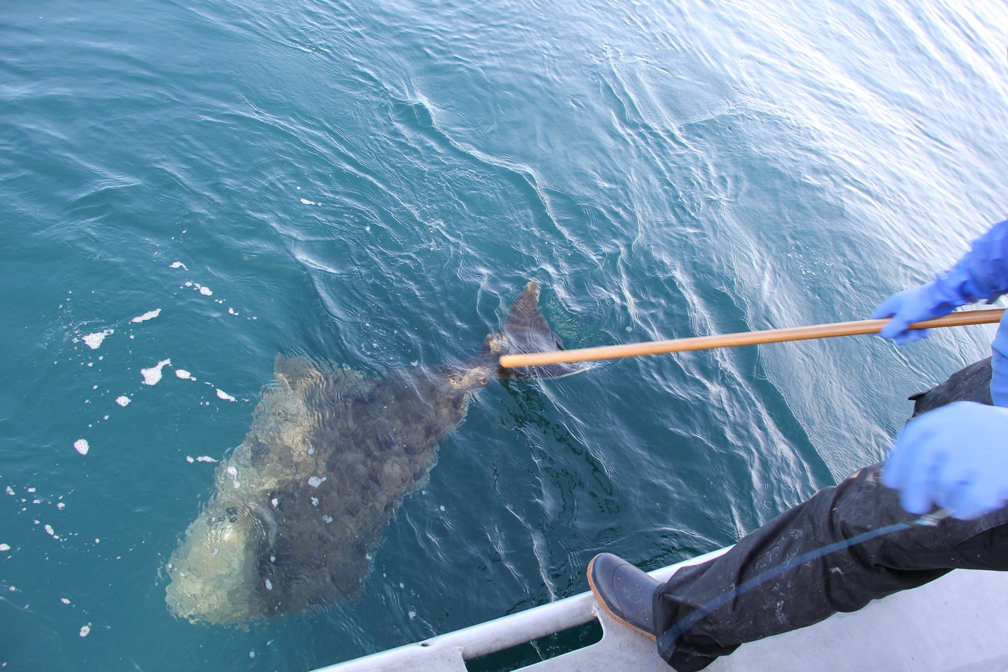 here are a few more releasing photos. We take this stick with a wire attached and grab the barb of the hook, then we cut the leader and pull the hook and leader out backwards and the fish swims away, just a little wiser…..